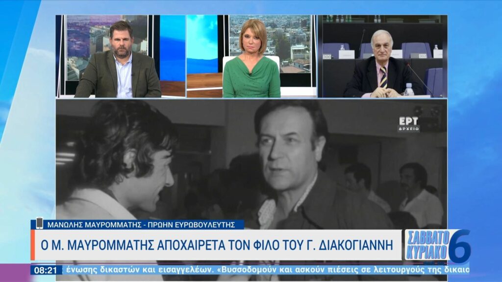 Ο Μανώλης Μαυρομμάτης φιλοξενήθηκε στην εκπομπή “Σαββατοκύριακο από τις 6” και αναφέρθηκε στον Γιάννη Διακογιάννη. Παράλληλα, σχολίασε τον επερχόμενο αγώνα μεταξύ Αργεντινής και Γαλλίας, δίνοντας ελαφρώς περισσότερες πιθανότητες στην “αλμπισελέστε”. Τέλος έχοντας διατελέσει Ευρωβουλευτής για μία πενταετία, μίλησε και για το περιβόητο “Qatargate”, που πλήττει τις τελευταίες εβδομάδες το ευρωκοινοβούλιο.//