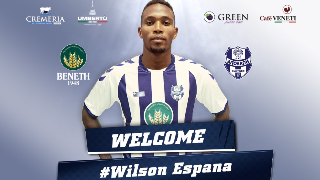 «Η ΠΑΕ Απόλλων Σμύρνης ανακοινώνει την απόκτηση του ποδοσφαιριστή Γουίλσον Εσπάνια. Γεννημένος στην Κολομβία, στις 16 Δεκεμβρίου 1997, αγωνίζεται ως σέντερ φορ. Πέρυσι έπαιξε στην πατρίδα του, στη Ρεάλ Καρταχένα (23 ματς, 6 γκολ). Στο παρελθόν αγωνίστηκε σε Ντεπόρτες Κιντίο και Μπόκα Τζούνιορς ντε Κάλι».