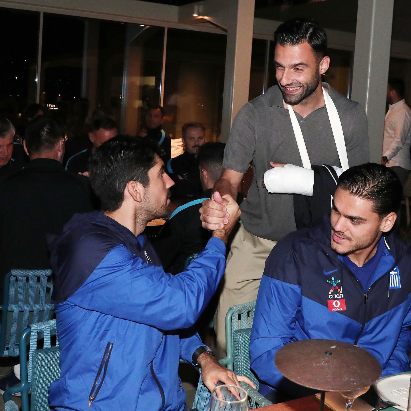 Λίγη ώρα μετά την ολοκλήρωση της προπόνησης στο «Γρηγόρης Λαμπράκης», σύσσωμη η αποστολή δείπνησε μαζί, με τον πρόεδρο της ΕΠΟ και τον τραυματία Τζαβέλλα να δίνουν το παρόν.