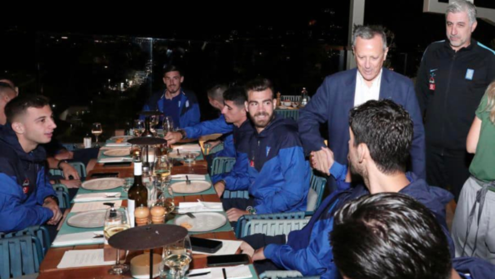Λίγη ώρα μετά την ολοκλήρωση της προπόνησης στο «Γρηγόρης Λαμπράκης», σύσσωμη η αποστολή δείπνησε μαζί, με τον πρόεδρο της ΕΠΟ και τον τραυματία Τζαβέλλα να δίνουν το παρόν.