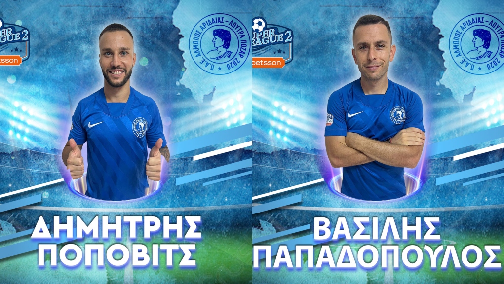 Πρόκειται για τους Δημήτρη Πόποβιτς και Βασίλη Παπαδόπουλο. Ο πρώτος είναι αριστερός εξτρέμ και έμεινε ελεύθερος από την σλοβακική Μιχάλοβτσε, με την οποία την περσινή χρονιά πραγματοποίησε 28 συμμετοχές, σκοράροντας ένα γκολ και μοιράζοντας τρεις ασίστ σε περισσότερα από 1.000 αγωνιστικά λεπτά. Ο δεύτερος είναι επιθετικός και έμεινε ελεύθερος από τον Πιερικό, με τον οποίο αγωνίστηκε πέρυσι στον βόρειο όμιλο της Σούπερ Λιγκ 2, πραγματοποιώντας 22 συμμετοχές, ενώ σκόραρε οκτώ τέρματα και “μοίρασε” πέντε ασίστ σε περισσότερα από 1.800 αγωνιστικά λεπτά.