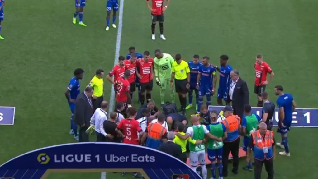 One of the match officials in the league game between Troyes and Rennes has just collapsed before kick-off. #ESTACSRFC pic.twitter.com/FIZGxGD8zo