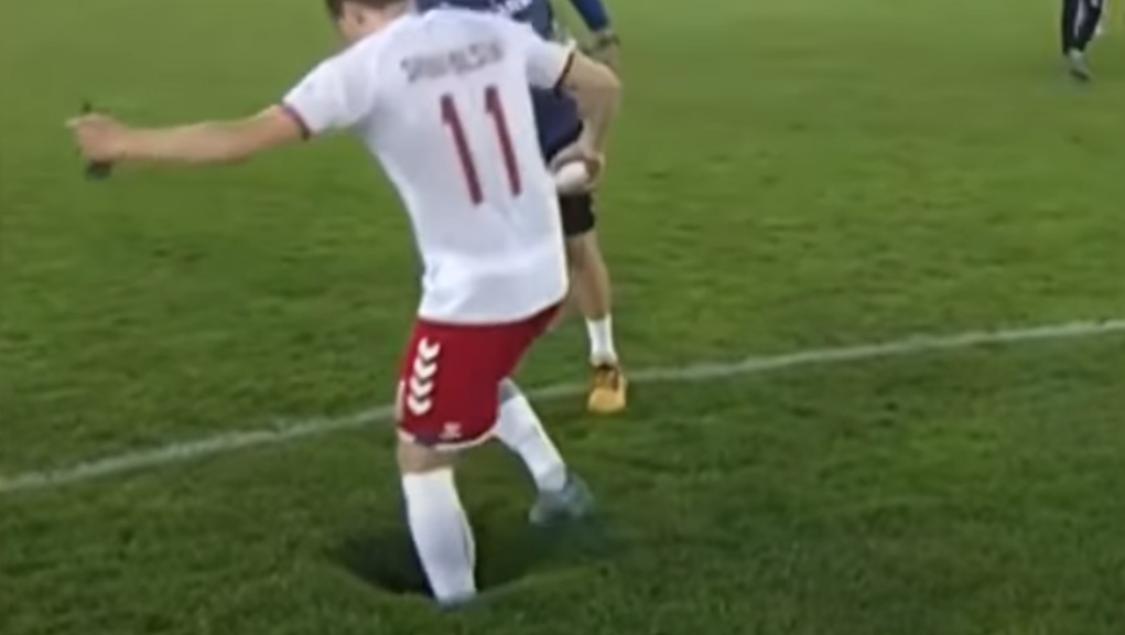 A huge hole appeared on the field after the Austria vs. Denmark game ended last night 😳 pic.twitter.com/1pMUTPYxmt
