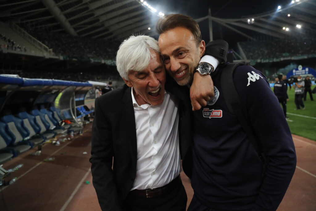Ο Χρήστος Κόντης με τον Ιβάν Γιοβάνοβιτς στον πάγκο του Παναθηναϊκού, κατά τη διάρκεια του περυσινού αγώνα των πλέι οφ κόντρα στον Ολυμπιακό. Κυριακή 17 Απριλίου 2022. (EUROKINISSI)
