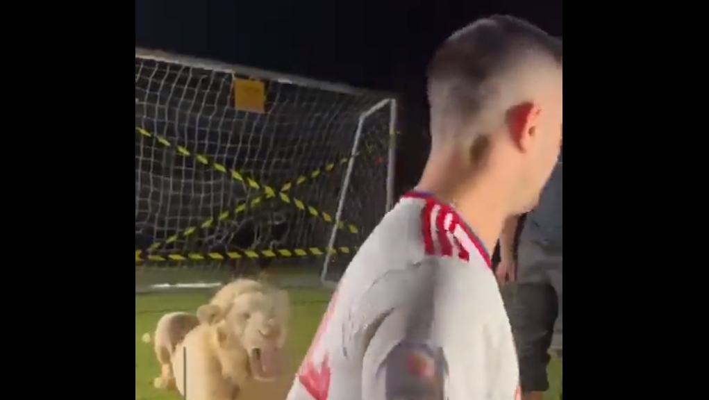 Ο Έλληνας αμυντικός παρουσιάστηκε έχοντας πίσω του το λιοντάρι, το οποίο βρυχήθηκε σε ανύποπτη στιγμή και ο Μανωλάς τα… είδε όλα!