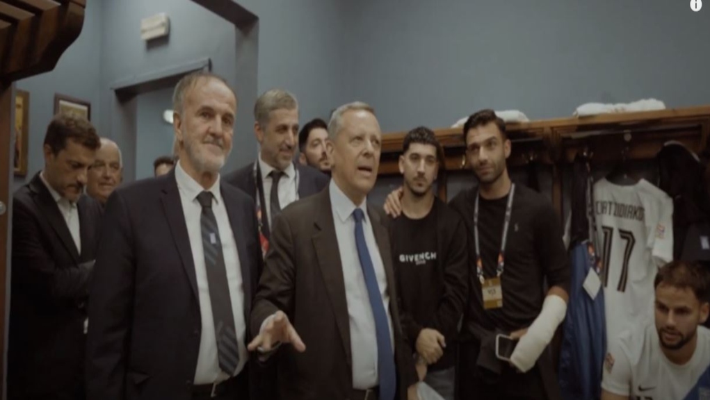 O Πρόεδρος της ΕΠΟ βρέθηκε στα αποδυτήρια της “γαλανόλευκης” αμέσως μετά το 3-1 κόντρα στη Β. Ιρλανδία, έδωσε τα συγχαρητήρια του στους διεθνείς για την εξαιρετική εμφάνισή τους.