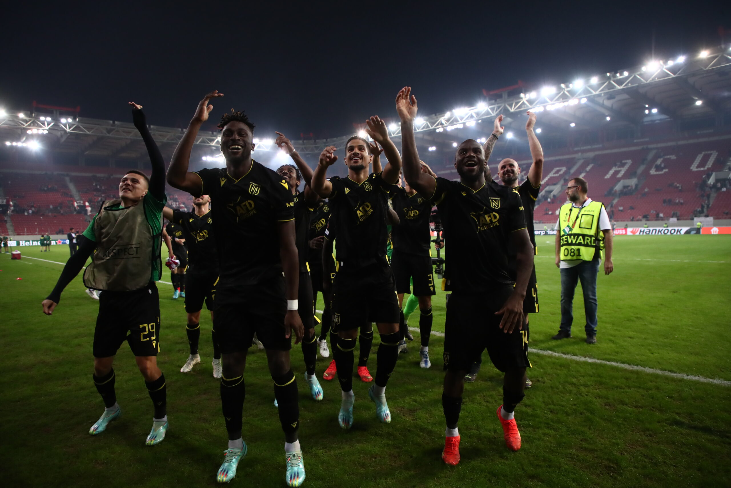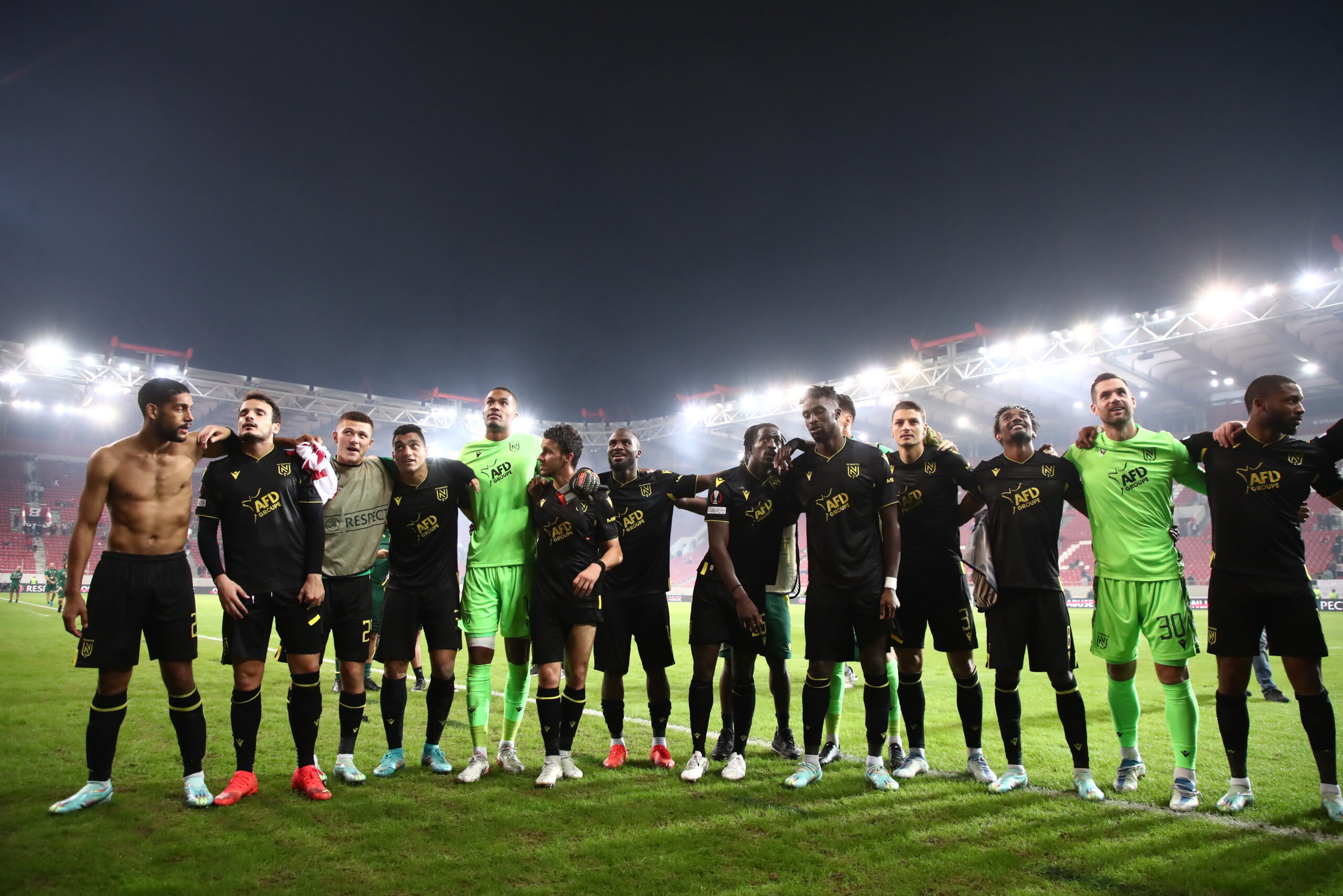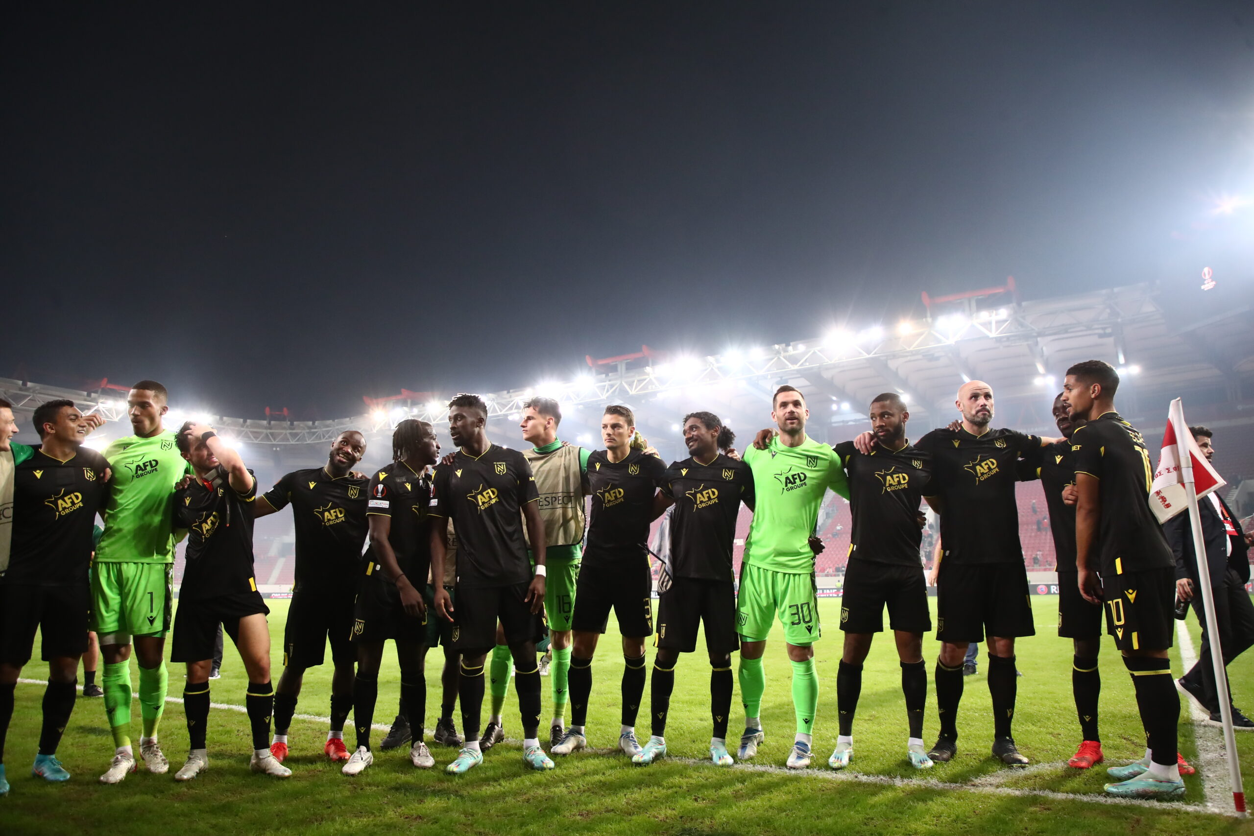 Η Ναντ επικράτησε 2-0 του Ολυμπιακού στο “Γ. Καραϊσκάκης” και προκρίθηκε στην επόμενη φάση του Europa League. Παίκτες και οπαδοί, πανηγύρισαν έξαλλα μετά τη λήξη της αναμέτρησης, φωνάζοντας συνθήματα, ενώ έγιναν όλοι μια αγκαλιά.
