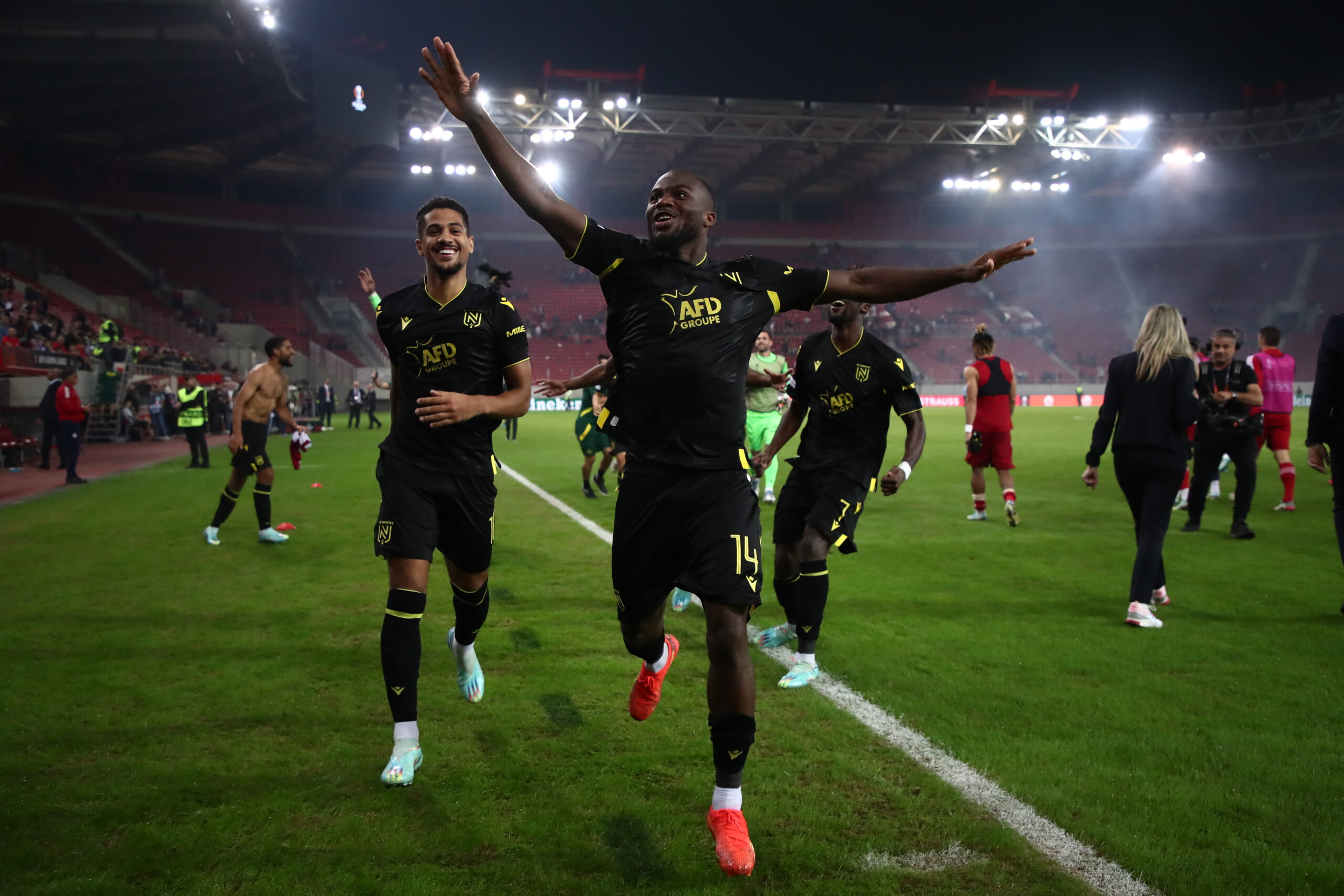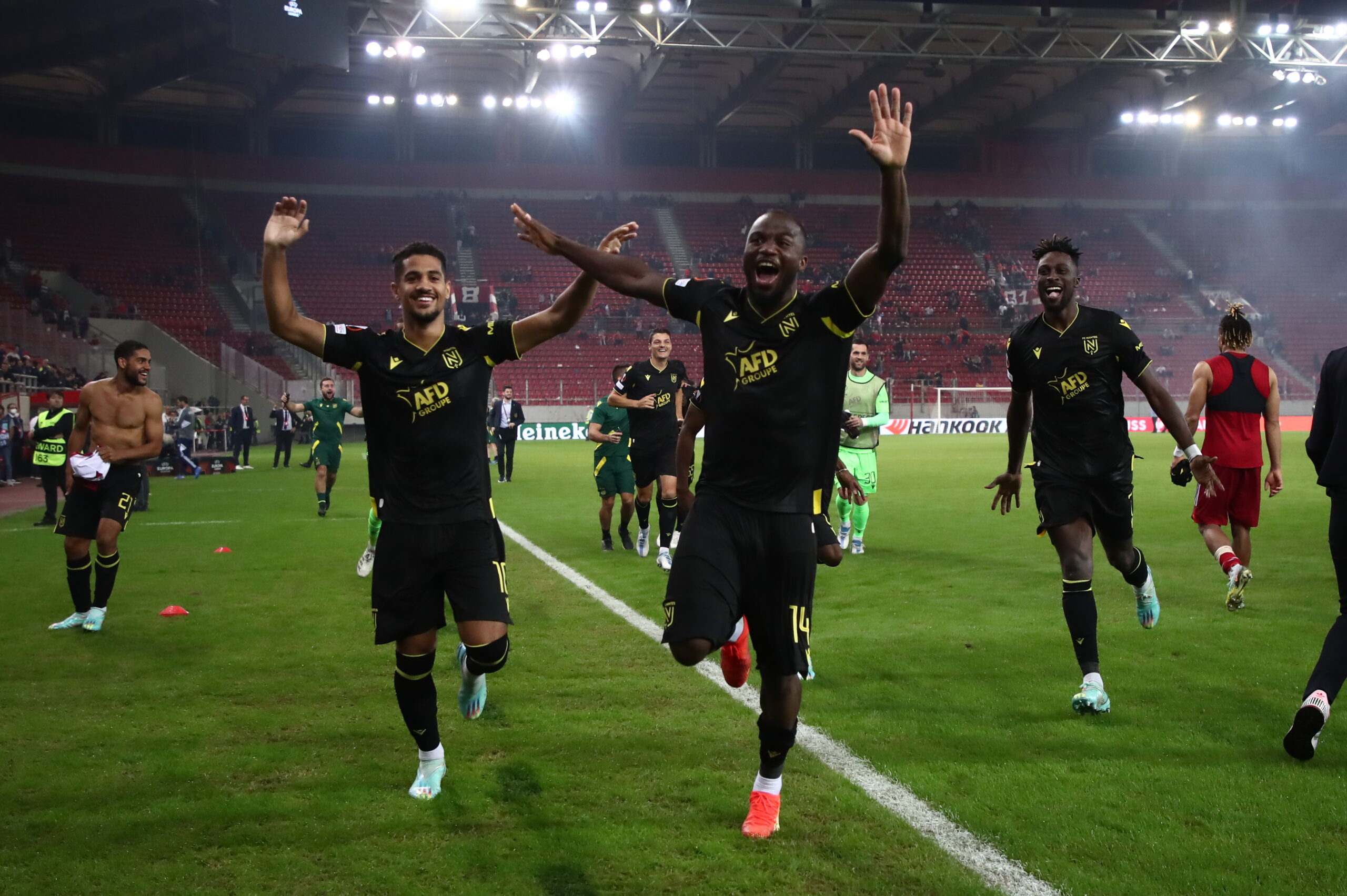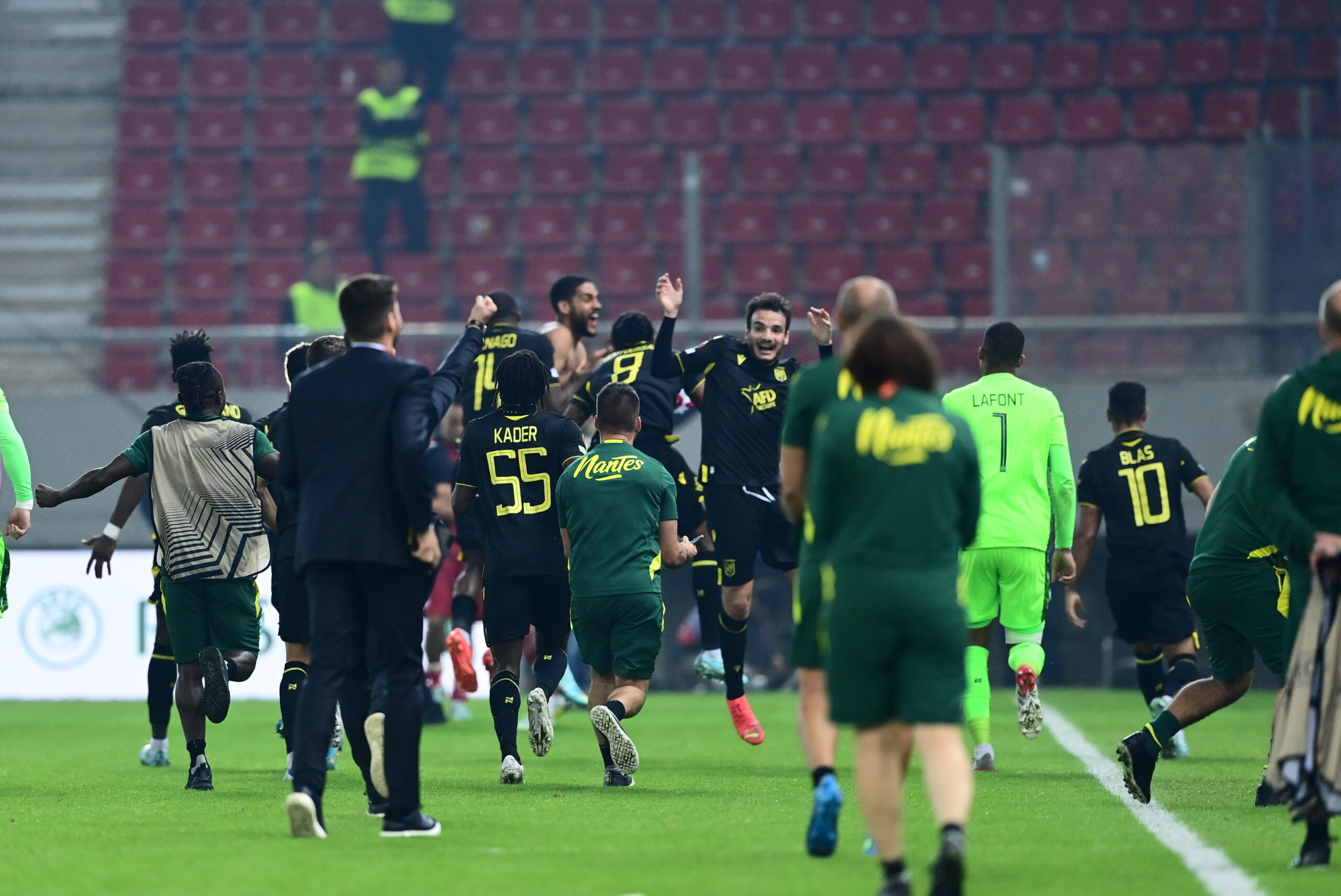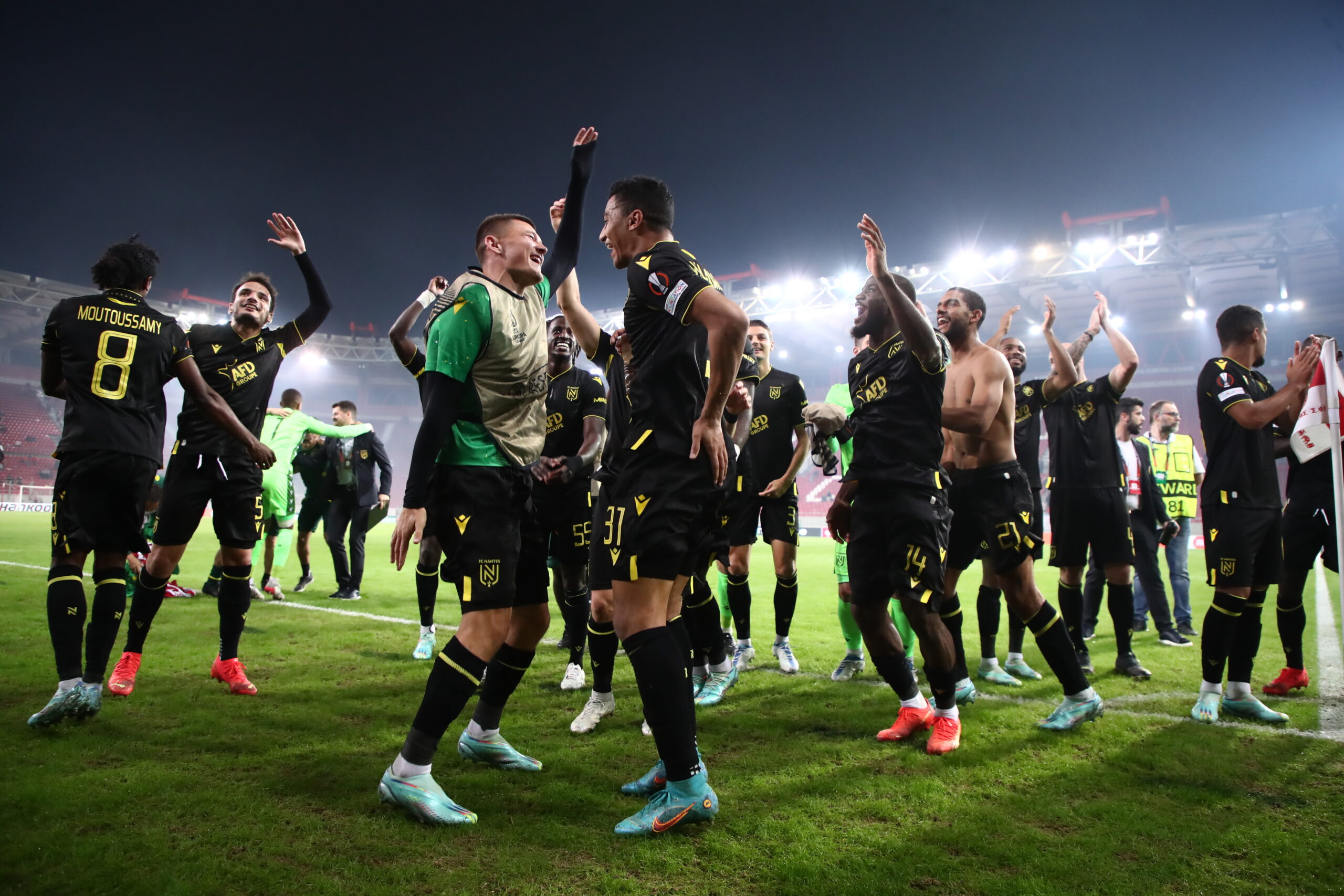 Η Ναντ επικράτησε 2-0 του Ολυμπιακού στο “Γ. Καραϊσκάκης” και προκρίθηκε στην επόμενη φάση του Europa League. Παίκτες και οπαδοί, πανηγύρισαν έξαλλα μετά τη λήξη της αναμέτρησης, φωνάζοντας συνθήματα, ενώ έγιναν όλοι μια αγκαλιά.