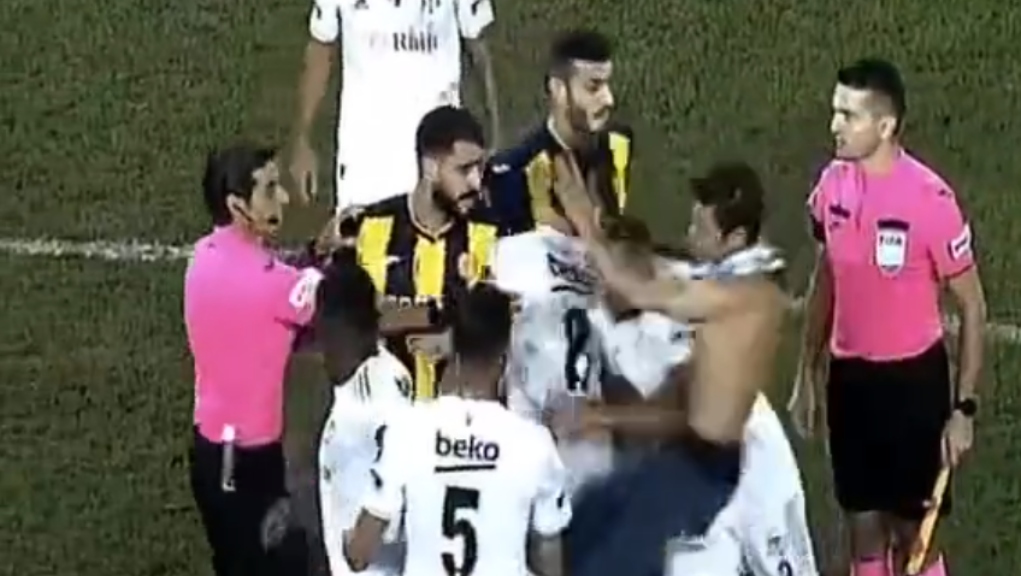Σε αγώνα για την 5η αγωνιστική της Σούπερ Λίγκα Τουρκίας, ένας οπαδός εισέβαλλε στον αγωνιστικό χώρο και κλώτσησε παίκτη των φιλοξενούμενων στην Άγκυρα.