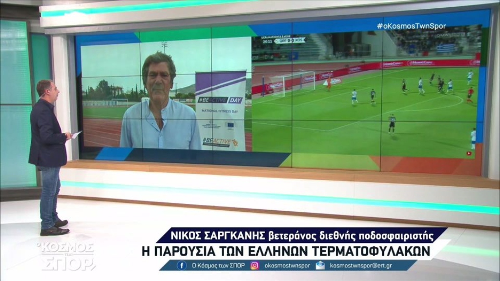 O Νίκος Σαργκάνης μίλησε στην εκπομπή της ΕΡΤ, “Κόσμος των Σπορ” και στάθηκε στην πορεία της “γαλανόλευκης” στο ποδόσφαιρο, σχολιάζοντας το αμυντικό στοιχείο που διακατέχει το αντιπροσωπευτικό μας συγκρότημα. Παράλληλα, ο ίδιος μίλησε και για το παγκόσμιο ρεκόρ του με τον Ηλυσιακό.