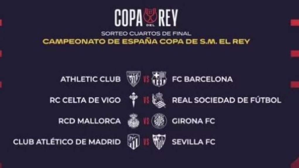 Μία μέρα μετά την πρόκριση της Ατλέτικο Μαδρίτης σε βάρος της Ρεάλ, που συμπλήρωσε το παζλ για προημιτελικά του Copa del Rey, πραγματοποιήθηκε η κλήρωση για τη συνέχεια της διοργάνωσης, ο τελικός της οποίας θα διεξαχθεί στο στάδιο “Καρτούχα” της Σεβίλλης.