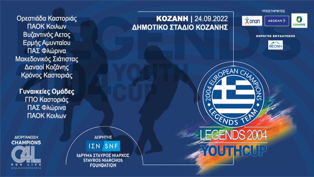 Το Legends 2004 Youth Cup διοργανώνεται από την Αστική Μη Κερδοσκοπική Εταιρεία “Champions For Life” με την δωρεά του Ιδρύματος Σταύρος Νιάρχος.
