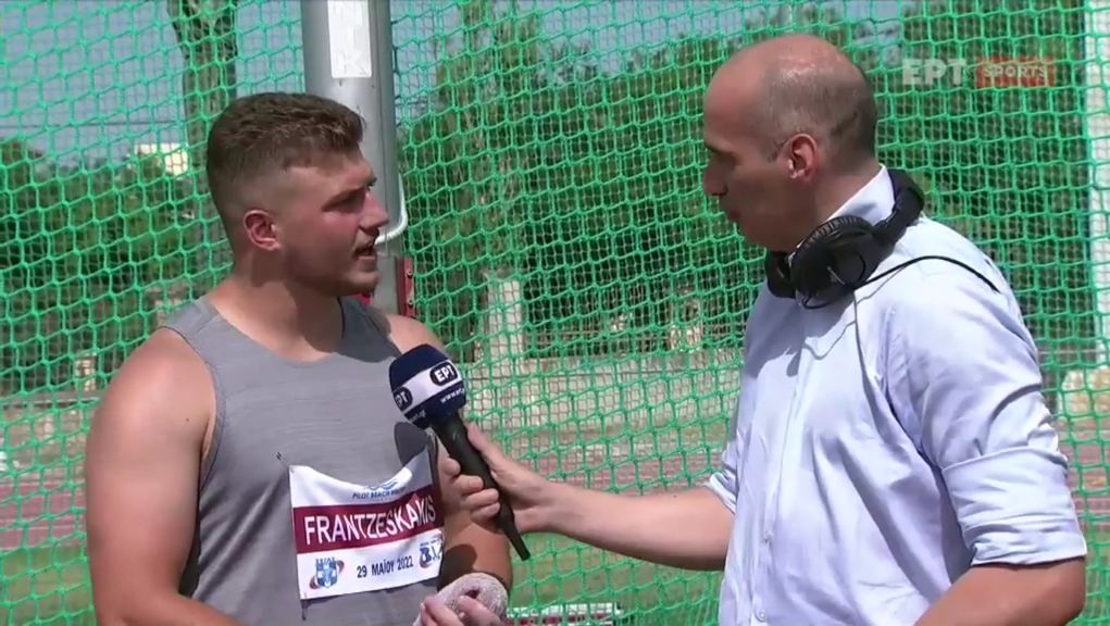 Ο Χρήστος Φραντζεσκάκης μίλησε στην κάμερα της ΕΡΤ, μετά τη συμμετοχή του στο αγώνισμα της σφύρας και αναφέρθηκε στην επίδοσή του αλλά και στην υψηλή θερμοκρασία υπό την οποία αγωνίστηκε.