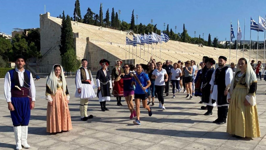 Η Πρόεδρος της Επιτροπής Αθλητισμού και Περιβάλλοντος της Ελληνικής Ολυμπιακής Επιτροπής, κα Αλεξάνδρα Πάλλη, μαζί με τα μέλη της Επιτροπής Νίκο Ιατρού και Νίκο Ξυλούρη, Οlympian κολύμβησης, την Πρόεδρο του Συλλόγου Ελλήνων Ολυμπιονικών Βούλα Ζυγούρη, την Παραολυμπιονίκη της κολύμβησης Ευθυμία Γκουλή, την Υφυπουργό Εργασίας και Κοινωνικών Υποθέσεων Δόμνα Μιχαηλίδου, τον εκπρόσωπο της Πρεσβείας του Ηνωμένου Βασιλείου Daniel Hong, τη Γκλόρια Πριβιλέτζιο, Μαραθωνοδρόμο, την Πρωταθλήτρια ρυθμικής γυμναστικής Μαρία Παγκάλου, την αλπινίστρια Βανέσα Αρχοντίδου, το Λύκειο Ελληνίδων και άλλους φορείς, υποδέχτηκαν τη σκυτάλη στο Παναθηναϊκό Στάδιο, και τη μετέφεραν ως την Ακρόπολη.