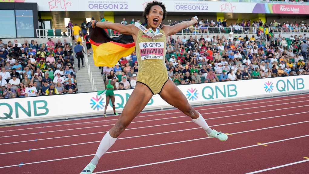Η Μαλάικα Μιχάμπο ανέβηκε στο υψηλότερο σκαλί του βάθρου στο μήκος με άλμα 7.12μ., στον τελικό του Παγκοσμίου Πρωταθλήματος στο Όρεγκον. Ασημένιο μετάλλιο για την Μπρούμε και χάλκινο για την Μέλο.