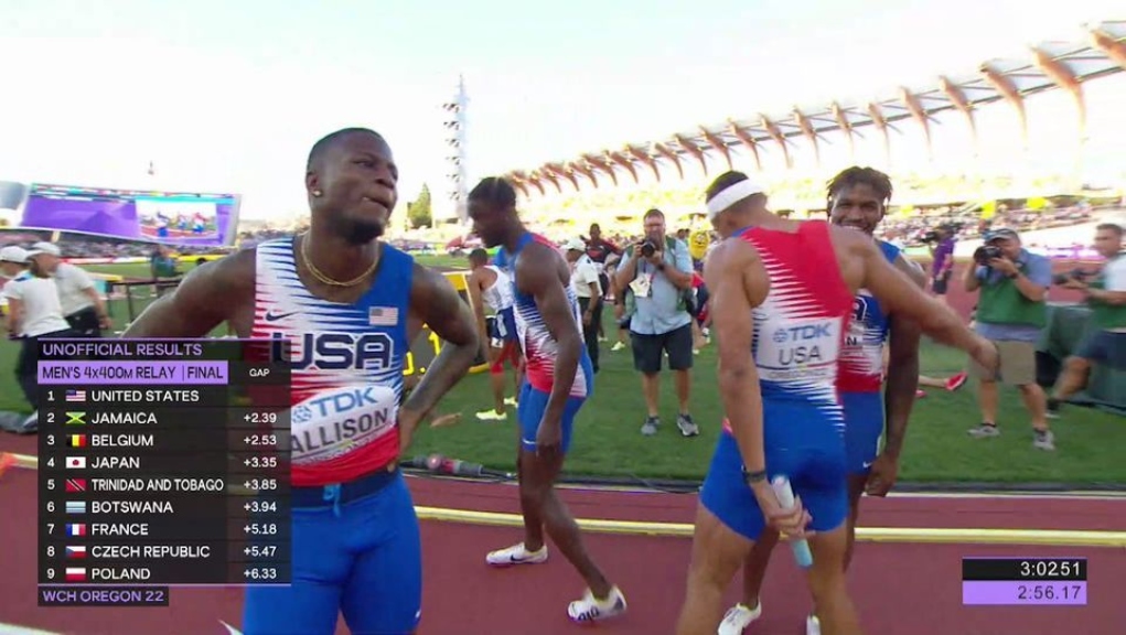 Το χρυσό μετάλλιο κατέκτησαν οι Αμερικανοί στο αγώνισμα 4Χ400μ. στο φινάλε του Παγκοσμίου Πρωταθλήματος Στίβου στο Όρεγκον.