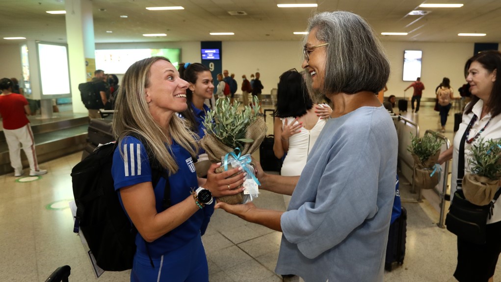 Η “χρυσή” αθλήτρια του βάδην επέστρεψε περιχαρής και έτυχε θερμής υποδοχής στο “Ελ. Βενιζέλος”, ενώ το μεσημέρι η ΕΟΕ ανακοίνωσε ότι ήταν αναληθή τα δημοσιεύματα που ανέφεραν ότι δεν ήταν επιλαχούσα στο πρόγραμμα της ΔΟΕ.