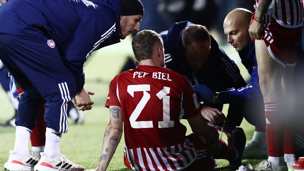 Ο τραυματισμός του Ισπανού επιθετικού στον αγώνα με τη Λαμία τρόμαξε τους πάντες στο “ερυθρόλευκο στρατόπεδο” καθώς αποχώρησε υποβασταζόμενος με πόνους στο γόνατο.