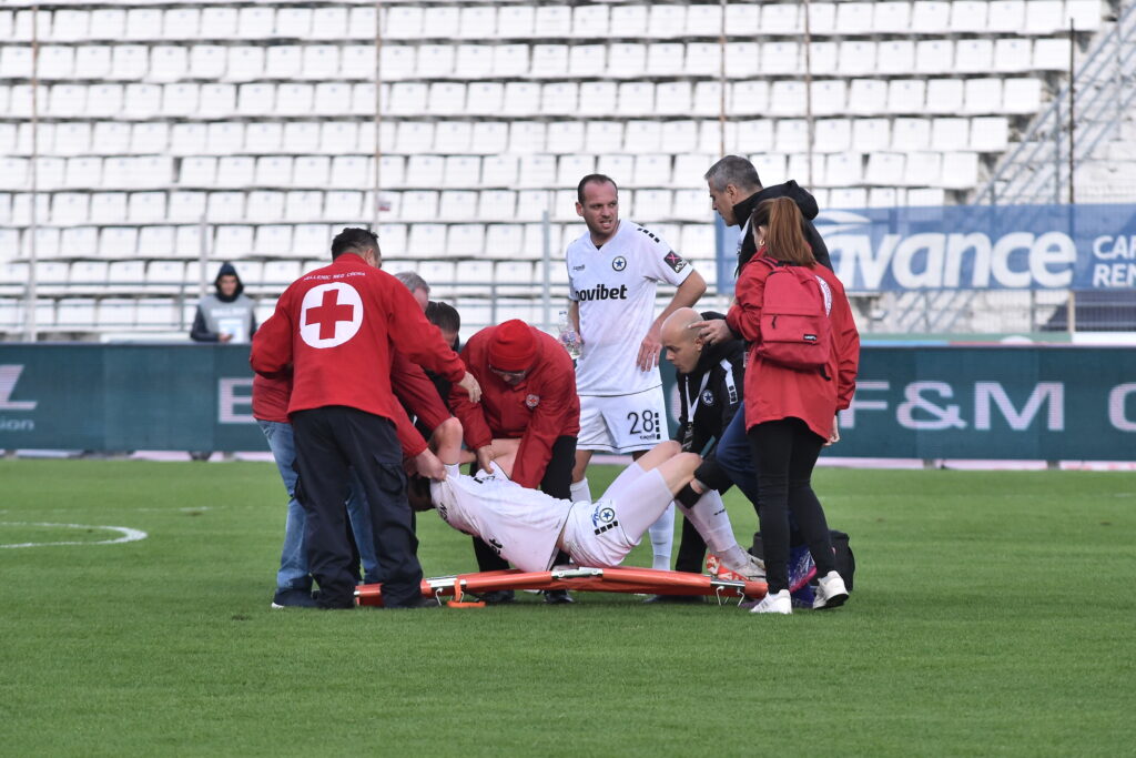 Στο ημίχρονο του αγώνα Βόλος – Ατρόμητος, ο παίκτης των “κυανόλευκων” έφυγε με ασθενοφόρο από το γήπεδο προκειμένου να υποβληθεί άμεσα σε εξετάσεις.