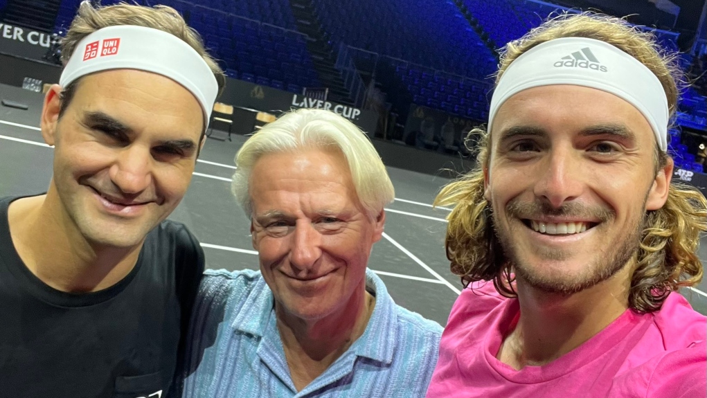 Ο Έλληνας τενίστας, δεν έχασε την ευκαιρία να φωτογραφηθεί με τον Ελβετό, έχοντας μαζί τον θρύλο που θα εκτελεί χρέη προπονητή στην team Europe, Μπγιορν Μποργκ.
